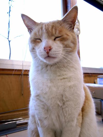 今日は雨だったので、眠そうなにゃんこを被写体にパチリ。