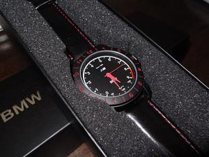 BMWのノベルティは結構良い物をくれるので、毎回逃さずチェックをしている。今回はM社のロゴが入ったタコメーター風の腕時計。ちゃんとメタルフレームに革ベルトだ。赤のステッチが良い感じ。