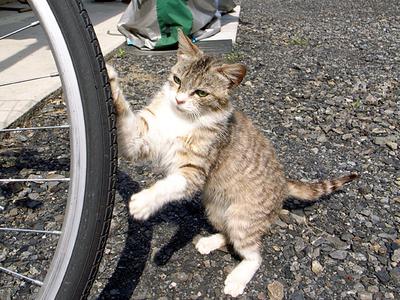 終始ウチの自転車のタイヤで爪研ぎしていた。