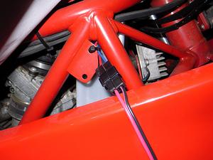 と、いう訳で弱ったバッテリーに電力を供給。すなわち充電をする。以前バッテリーを交換したときに充電・給電用のカプラーを付けたので、早速それを利用して充電する。あぁ、楽ちん。