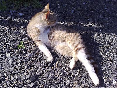 朝からバイクをいじっていても周りをちょろちょろしつつも、良い場所を見つけては座り込んで毛繕いをしていた。