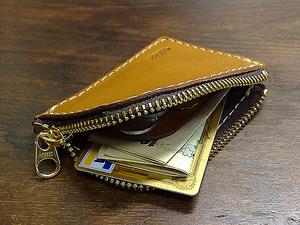 もともとあまり現金は持ち歩かないので、ちょっとした小銭入れに紙幣を一緒に入れるスタイルが基本だ。今回はそれにカード類も入れられるようにしたのと、内容物を取り出しやすい様にL字形にチャックを装備した。