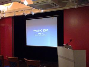 今回初めてアップルのKeynoteを使ってみたが、定番のPowerPointよりも使い勝手が良くて気に入った。スピーチの経過時間の表示(残り時間も可能)や、次のスライドの確認とかがサブディスプレイで設定したMacBook側でチェックできる。Bluetoothのコントローラがあれば最高だったな。