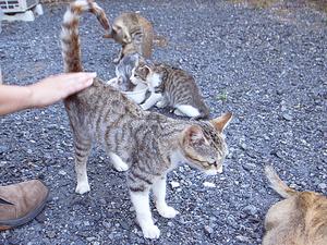 しっぽの付け根を軽く叩いてあげて、あごからヒゲの生え際を撫でてやると、ゴロゴロの大興奮で自分の靴で爪を研ぎ始める(それは勘弁してくれー)。