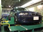 テスターに掛ける前にショップのメカ担当スタッフに試走してもらう。自分の感覚としては高速道路でわずかにハンドルが左に取られる感じ。メカからも似た様なコメントだったので、ほぼ間違いなかろうということで、テスターに車を乗せる。