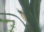 ビンに移した後、数時間の間エビはかなり興奮しているらしく激しく泳ぎ回っている。そのうち茎についたコケを食べ始めた。あまりの食欲にコケが不足しそうな気配がする…。