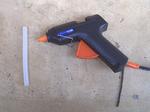こういう物の場合は表面が平らでないので、通常の木工用ボンドを使うより粘度があるホットメルトは都合が良い。また、接着時に溶かした樹脂も冷えれば元の樹脂に戻る。それに接着剤に使っている樹脂は弾力性にも富んでいるので衝撃にも強い。こうした方法だと作業もスイスイと進むのでオススメだ。