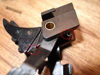 ここがスムーズに動かないと、シアーをコントロールできずにフルオートしてしまいます。シリコンオイルをトリガーバーとフレーム間、そしてシアー部に注油してトリガーバーを上下にピコピコ動かしてスムーズに動くようになれば解決するかと思います。