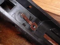 スライドストップスプリングは、シャーシに圧入されているだけなので、手で軽くこじるか、マイナスドライバーで下から持ち上げるなどして取り外す。