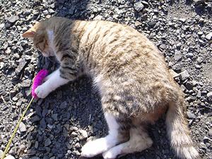 天気も良いので、外で日なたぼっこをしていたちびっちょと遊ぶ(遊んでもらう)。
