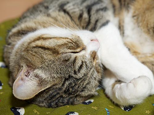 今日みたいに休みの日は側に飼い主がずっと居るのでよく眠る。