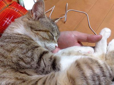 テレビを見ていると、ちびっちょさんがやって来て膝の上に乗っかって眠ってしまうのが毎度のパターンだ。