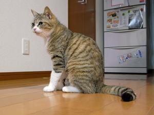 で、疲れると冷たい床にペッタリと寝て体を冷やす→落ち着いたらまたおもちゃのネズミで爆発的に遊ぶ→疲れたから人の膝の上で寝る→腹が減ったのでご飯を催促する…。