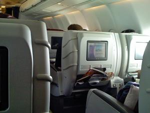 大きい液晶ディスプレイも着いていたけど、特に見たいものはなかったので、ワインを飲みながらMacで書類を作ったりiPodで音楽聞いていた。もちろん電源もある。