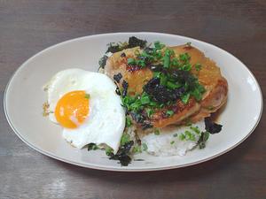 丼なのでいつもはどんぶりだけど、ヨメのアイデアで今回は洋風というか日本以外のアジア料理っぽくなった。