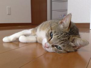 思いっきり遊ぶので、だんだん暑くなってきてそのうち床にへばりついてしまう。床は冷たいから。で、体が冷えたら、また遊ぶ…というのを繰り返ししている。