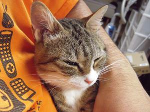 ダイニングに居るときなどはあまり膝の上に来ないのだが、この時だけは別。毛繕いをしてそのまま寝ちゃうのだ。ありがたい(?)ことに、自分の腕の毛まで丁寧に毛繕いしてくれる(笑)
