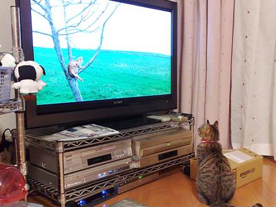 ネコの登場シーンになると激しく反応。身を乗り出したり、画面に手を出したりしている。