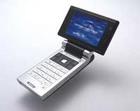 ディスプレーは240×400ドットの2.6インチ。ちゃんと16:9になっているところが偉い。問題はこの巨大なディスプレーで、そのまんま折りたたみ式として使うと、ワンセグ放送受信時に携帯を90度倒さないといけないので、ディスプレーがぐるりと回転する構造になっている。