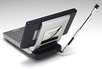 この回転するディスプレーのお陰で、卓上に置いた状態でテレビの視聴がしやすくなる。背面にあるアンテナはテレビ放送の受信用で携帯電話用ではない。ちなみに地上波も視聴できるので、テレビが無いと生きていけない人向けの携帯電話だ。