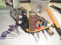 さて、コンデンサの交換についてですが、リスト化はしていないので、分かりません…。自分の場合は、コンデンサ側面に記載してあるコンデンサ容量と電圧をメモに取り、秋葉原の電気街で購入しただけです。コンデンサはできるだけオーディオ用のものを選択してください。