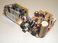 流石に10年以上経過している製品なので、紙フェノール基板のディスクリート実装部品が時代を感じさせる。今ならば3分の1くらいの大きさで作れそう(笑)使われているパーツも当然それなりの年代物なので、チェックをするとやはりというか電解コンデンサの類は液漏れしていたりする。