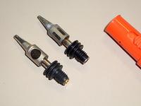 写真下が新しいこて先なのだが、空気の取り入れ口の構造やバーナーへのガス導入パイプの材料が若干変わっている。取付樹脂もしっかりしたものになっているようだ。こんなところでもちゃんと改良を続けているのだなと感心した次第。