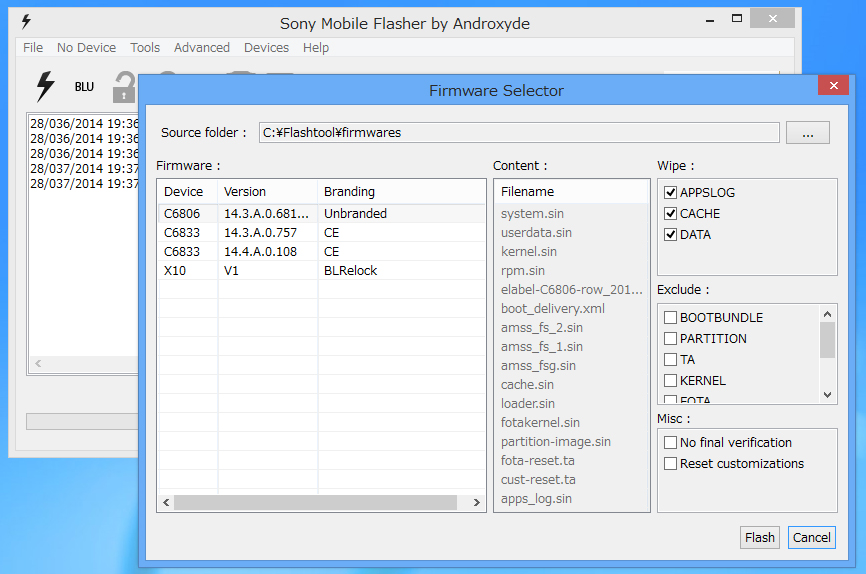 そんな時は慌てず騒がずFlashtoolでファームの書き直し。新しめのファームをダウンロードして、サクッと完全初期化と書き直し。程なくして、出荷状態の端末のできあがり。それからはまた純正のアップデートを繰り返して再設定。何とかandroid 4.4.4にアップデートされた。