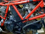 エンジンは黒塗装されているが、流石に17年にもなると塗装面はボロボロだ。ずっと屋外駐車だったので塗装面の劣化は普通以上だろう。ちょっと触るだけでポロポロと剥がれてしまう。既にアルミの地肌が見えている部分が大半だ。バイクの主治医からもオーバーホールを勧められているので、そろそろ検討する必要もありそうだ。