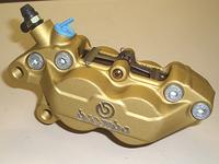 先日DUCATIを整備していて、フロントブレーキのパッドの状態が芳しくなかったのと、キャリパ自体にオーバーホールが必要だったからちょうど良かった。それに異径4ポットタイプが欲しかったし、金色キャリパだし(笑)