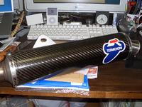 通常自分のオートバイに装着されているサイレンサはイタリアのTERMIGNONI(テルミニョーニ)製のステンレスとドライカーボンのもの。アフターマーケット製の物の割には爆音では無い。事実過去の車検では全てこのサイレンサのままで通してきた。しかし、昨今の騒音規制は厳しいため、微妙に音量の大きいこのサイレンサでは万が一…と思い、ノーマルに戻すことにした。