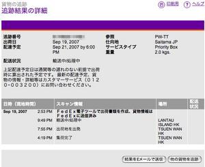 「オーダーしたブツを出荷したぜ〜」と、FedExのトラッキングナンバーを記載したメールが業者より届いた。