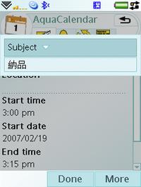 例えばContacts(予定表)の置き換えアプリとして有名なAquaCalendarは、M-FEP3での直接入力が可能である。AquaCalendarは本体のContactsのdatabaseを共有しているので、AquaCalendarで入力された内容は全てContactsへも展開される。すなわちContactsで開いても、ちゃんと予定が読めるのだ。