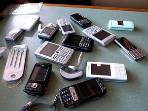 食事の終わったファミレスの机の上には携帯電話がざっくざく。しかも大半は海外ブランドの怪しいモデルばかり。W-CDMAだけでなく、Bluetoothの怪電波を大量に発信していた(笑)